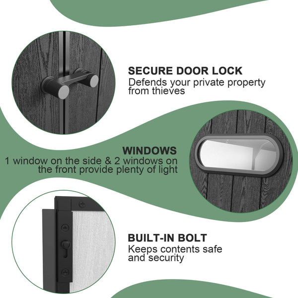 Bring durability and elegance to your outdoor storage with the [08X12FT] Large Polypropylene Storage Shed. Designed with a sleek black-and-gray finish that complements any backyard aesthetic, this shed combines style and practicality to give you a premium storage solution. With its spacious interior, reinforced features, and lockable swing doors, it’s your reliable partner for safely housing everything from garden essentials to heavy-duty equipment.