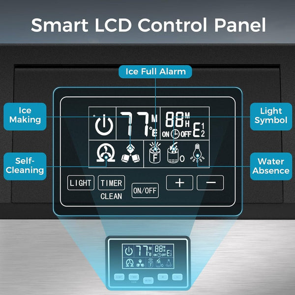 Easy to Use: With an easy-to-use control panel, you can check it out all the time to know the status of the ice-making.
