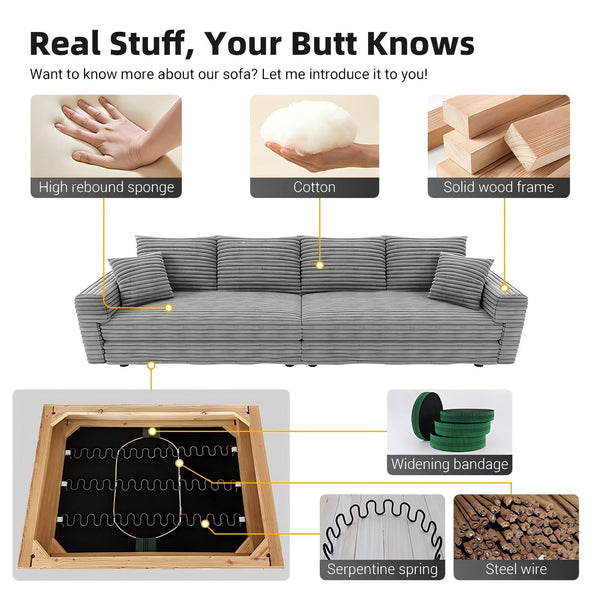 - 1000LB Stable Support Even for 4 Adults: It's no exaggeration to say that the living room couch won't wobble or collapse when you and your family play on it. The living room sofa is made of high quality materials, whether it is wood, metal spring seat cushions or other support materials,all of them are carefully selected and processed to withstand the weight of 1000LB, support you and your family firmly, and always stay straight and will not be bent or deformed in the process of using the cloud.