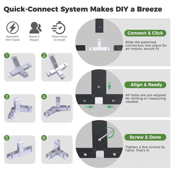 Built to withstand the elements, the rust-resistant aluminum frame features a smart 3-way connector system that not only simplifies assembly but enhances overall stability. This heavy-duty design is engineered to handle snow loads up to 20 PSF and wind gusts up to 56 mph when properly anchored, giving you peace of mind during stormy weather. Plus, the versatile base allows for secure anchoring into soil, concrete, or wood, making it a permanent and durable addition to your outdoor space.