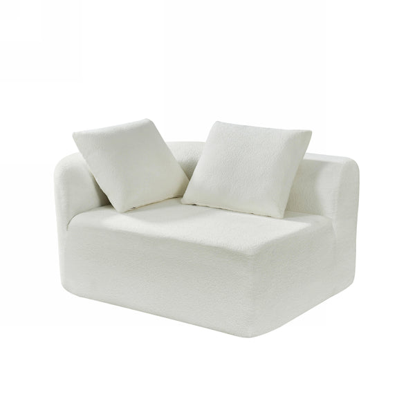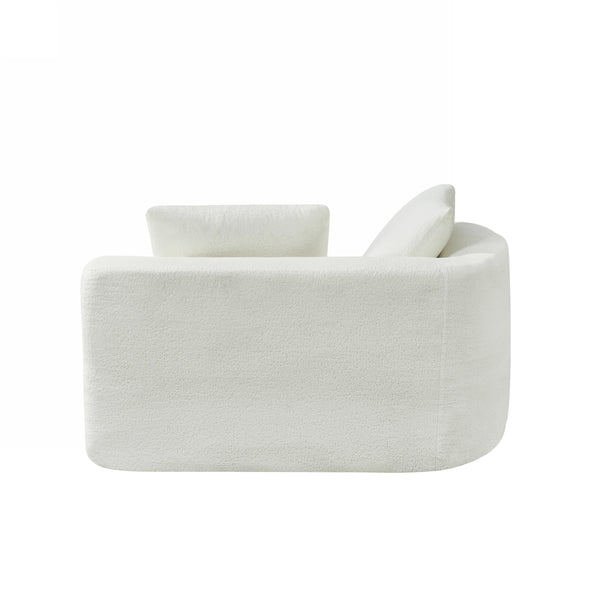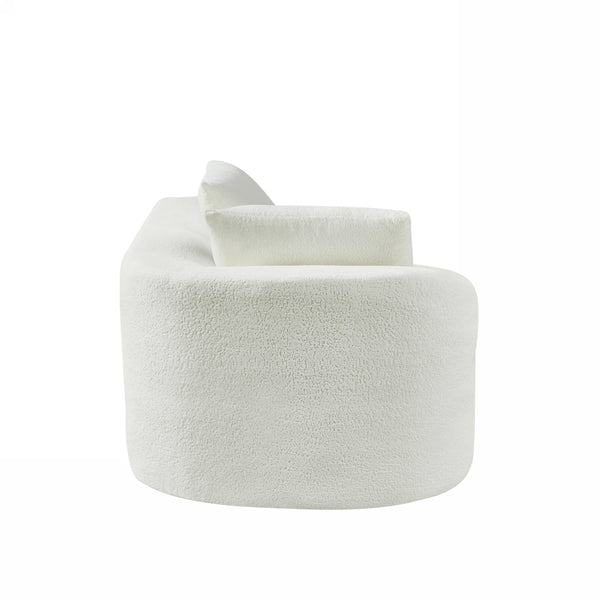 - 【High-Quality Fabric & Fully Compressed Sponge Design】Upholstered in high-quality pearl fabric, this sofa offers a soft, luxurious feel reminiscent of lamb’s wool. The **high-density fully compressed sponge** construction eliminates the need for a traditional wooden frame, providing a lightweight yet durable design. This innovative approach ensures consistent support and a plush, body-conforming comfort that adapts to your every move. The curved retro design adds a timeless elega