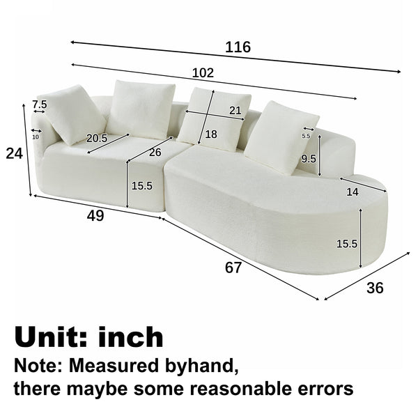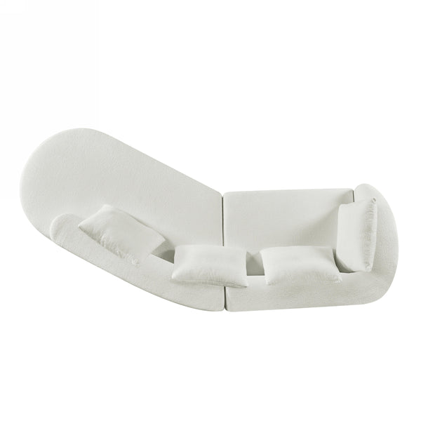 - 【Modern Aesthetic Appeal】Designed with a sophisticated curved silhouette, this sofa brings a touch of modern luxury to any living spaceDesigned with a sophisticated curved silhouette, this sofa brings a touch of modern luxury to any living space. Its smooth, flowing lines and plush upholstery create a harmonious blend of comfort and style, making it a versatile centerpiece that effortlessly complements a variety of interior themes, from contemporary chic to retro-inspired elegance