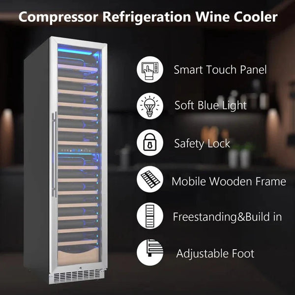 DOUBLE ZONE TEMPERATURE CONTROL-Upper temperature zone:41°F-54°F,Lower temperature zone:54°F-68°F.The top and lower are kept at different temperatures, so they can be placed in different areas depending on the wine and the drink.