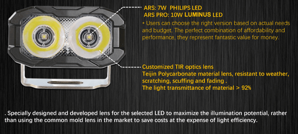 - Uses TIR (Total Internal Reflection) lens is different from the conventional optics parts, which lose some light internally and produce glare. The TIR lens collects all of the light from the LED and directly leads them to where you need, drastically reducing glare and improving total efficiency.