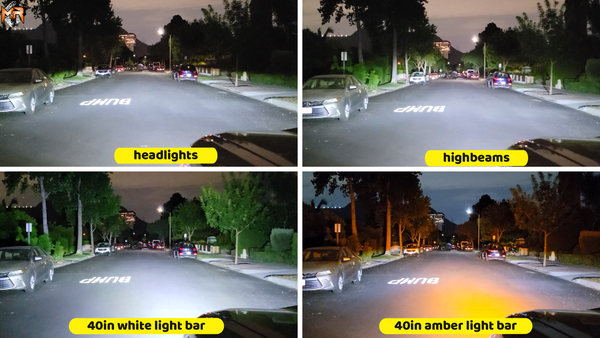 2) Amber LED -- Up to 7,000 lumens, used in poor driving conditions such as dust, fog, snow and rain. It reflects through air particles much less than the white light. Therefore, making it ideal for poor driving conditions.