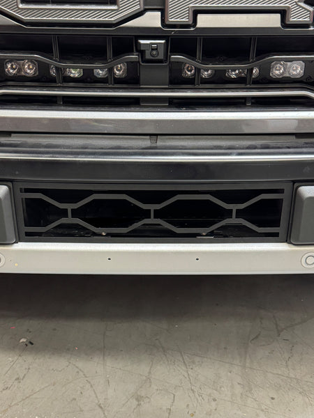 The factory Ford Raptor Gen 3 (refresh) has a large plastric openings that don't protect your lower active shitters and coolers. We designed a metal guard that is powder coated black and has a rugged design. It replaces the factory plastic trim in your lower bumper to add some protection and even light up the night. You can add two (2) LED light pods to make your Ford Raptor Gen 3 (refresh) truly one of a kind.