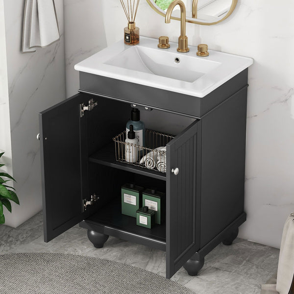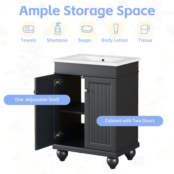 Ample Storage Space: This simple and practical design freestanding bathroom vanity features a cabinet and an adjustable style shelf for storing bathroom essentials. Both the cabinet and the shelf are spacious, and both offer enough space to most necessities used in bathroom. The adjustable shelf is a perfect place to accommodate bath stuff such as shampoos or towels.