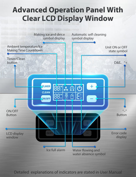 • Easy to Use: With an easy-to-use control panel, you can check it out all the time to know the status of the ice-making.