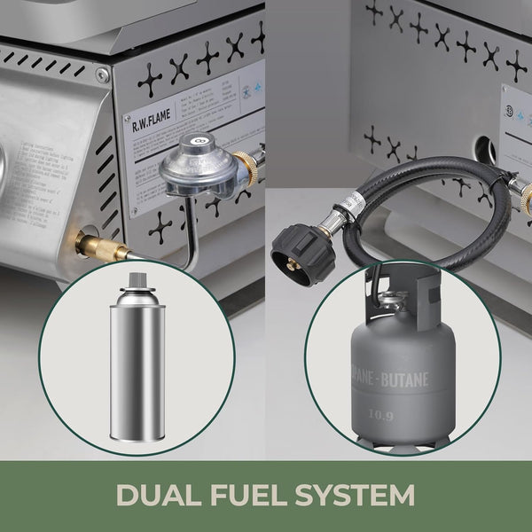 • Easy to use: Used with LPG(liquid gas) or small gas tank, (gas is not included in the package) the product is compact and lightweight, which can be easily carried, and you can enjoy a delicious barbecue anywhere.