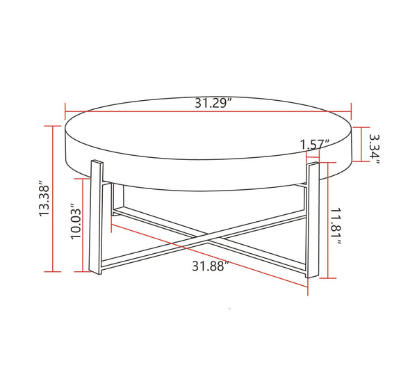 High-quality materials: This round coffee table is made of high-quality fir wood on the top and sides, while the back of the table is made of high-quality MDF.The round coffee table has a solid metal iron frame, which is durable and solid, and cross legs provide stability.