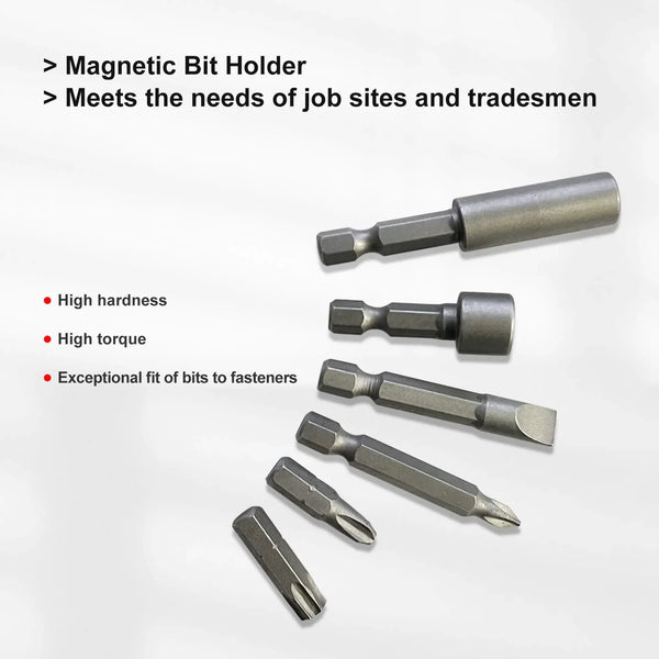 Magnetized & Easy To Carry Our magnetized bit holder securely holds bits and drivers and delivers just enough magnetism into the bits to create optimal retention of fasteners while you carry on and get the job done! Our durable, compact storage case keeps your bit collection organized and always ready to use