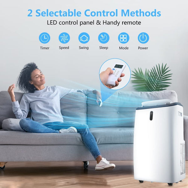 - ๐๐ค๐๐๐ก๐๐ฉ๐ฎ ๐๐ฃ๐ ๐๐๐จ๐ฎ ๐พ๐ค๐ฃ๐ฉ๐ง๐ค๐ก - The multifunctional air conditioner is not only equipped with a touch-intuitive LED control panel, and also comes with a handy remote control. No more repeatedly leaving your bed or couch, you could control various functions remotely and conveniently. Ergonomic handle and universal wheels also greatly enhances the mobility of the portable air conditioners.