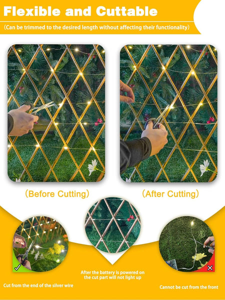 - Flexible and Cuttable Inspiring Infinite Creativity: The sturdy and bendable copper wire, which can still be used after cutting. The battery operated fairy light easily achieves heart-shaped, star moon, letter shape, etc. Whether it's wedding, dollhouse, poster, photo framet, party, creative gift or other decorations, every inspiration you have can be perfectly presented.