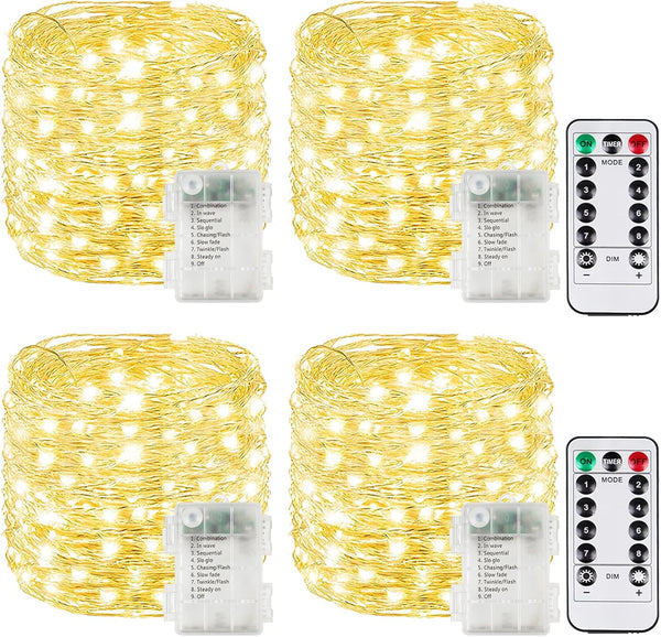 - Ultra-Bright and Durable Fairy Lights Battery Operated: Each string made of 60 super bright LEDs, 20 feet of sturdy silver color copper wire and a battery case with a timer, ensuring longevity and reliability. These led string lights cast classic, romantic and warm glow in the dark, making them ideal for indoor and outdoor decor, such as curtain, garland, Christmas tree, bedroom, centerpieces, fireplace, porch, patio, garden, party, and all kinds of holiday decorations.