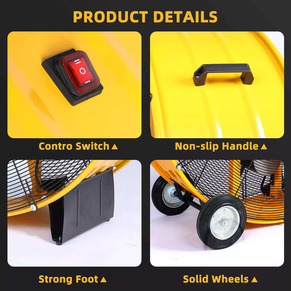 - With its portable design and mobility, you can easily move the fan wherever it’s needed most, whether it’s in a workshop, warehouse, or garage.