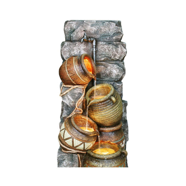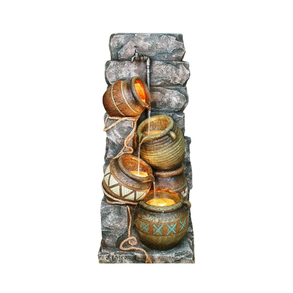Turn your outdoor space into a serene retreat with our 43-Inch Tall Outdoor Polyresin Pottery Pitcher Fountain with LED Lights. Thoughtfully designed for elegance and ambiance, this multi-tiered fountain will elevate the beauty of your garden, patio, or backyard. Imagine the soothing sounds of cascading water combined with the enchanting glow of built-in LED lights, creating a relaxing atmosphere perfect for unwinding or entertaining guests. The unique textured pottery finish adds a touch of artistry and sophistication to any outdoor decor.