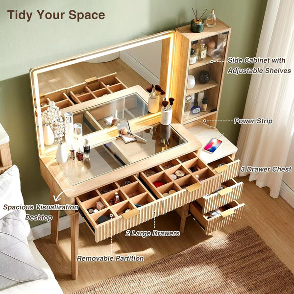 Elevate your beauty routine with the Stylish 48" Fluted Makeup Vanity. Designed to combine functionality with aesthetic appeal, this vanity set is perfect for any modern bedroom.