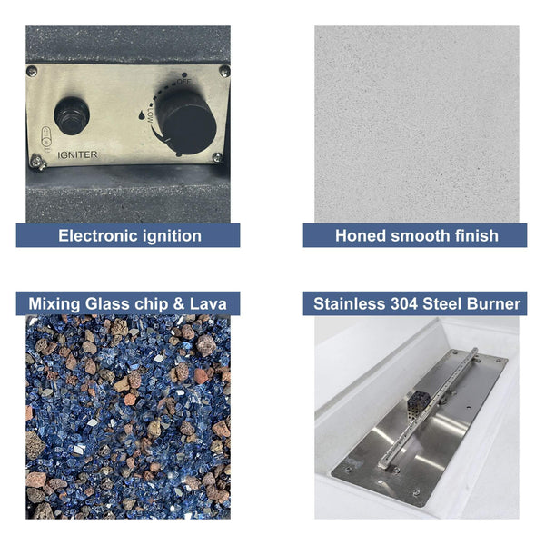Transform your outdoor space into a haven of style, warmth, and togetherness with the 52 Inch Outdoor Concrete Liquid Propane Rectangular Fire Pit Table. Designed for modern living, this fire pit table serves as the perfect focal point for your backyard, garden, or patio, instantly elevating its ambiance.