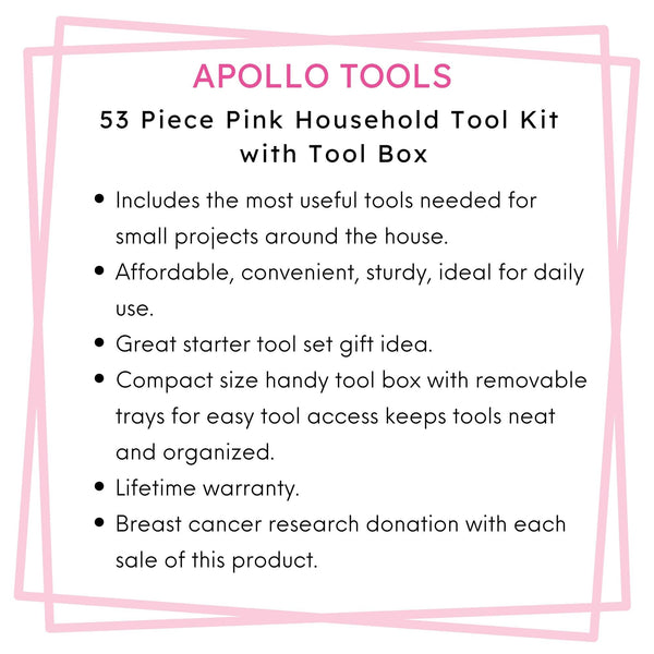 Apollo Tools, Ltd is donating $0.75 from this purchase to The Breast Cancer Research Foundation®. BCRF’s mission is to advance the world’s most promising research to eradicate breast cancer. For more information about BCRF, visit www.bcrfcure.org. You can read more about Apollo Tools' breast cancer commitment here.