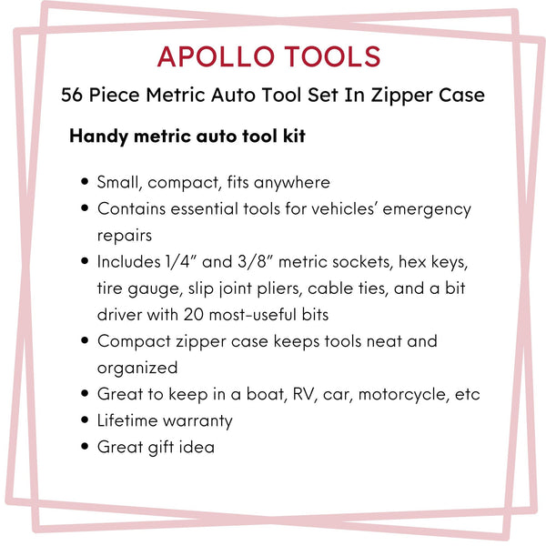 HANDY AUTO TOOL KIT: Small, compact, fits anywhere, but contains the essential tools for your vehicles’ emergency repair, including most used 1/4” and 3/8” sockets, hex keys, tire gauge, slip joint pliers, cable ties and a bit driver with its 20 most useful bits.