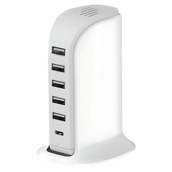 Upgrade your charging experience with this Desktop Charging Hub, designed for efficiency, safety, and functionality. With 6 charging ports, including a Type-C fast charging port, it provides reliable power for multiple devices simultaneously while ensuring top-tier safety and performance. The compact design saves space on your desk or travel bag, making it a versatile addition to your tech accessories.