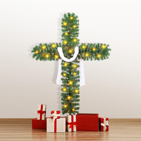 - You will receive an Christmas cross with a height of about 6 ft/ 1.8 m, 100 lights, and a white silk scarf; The combination looks beautiful