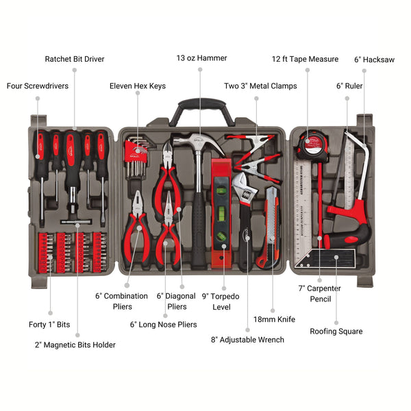 COMPLETE DIY TOOL SET: For Wood, Metal, Craft, Decoration, Hanging, Assembly, Home and Garage Repairs. A clever selection of the most reached-for hand tools used for DIY household repairs and maintenance tasks. This practical set of tools makes DIY faster and easier for home repair jobs.