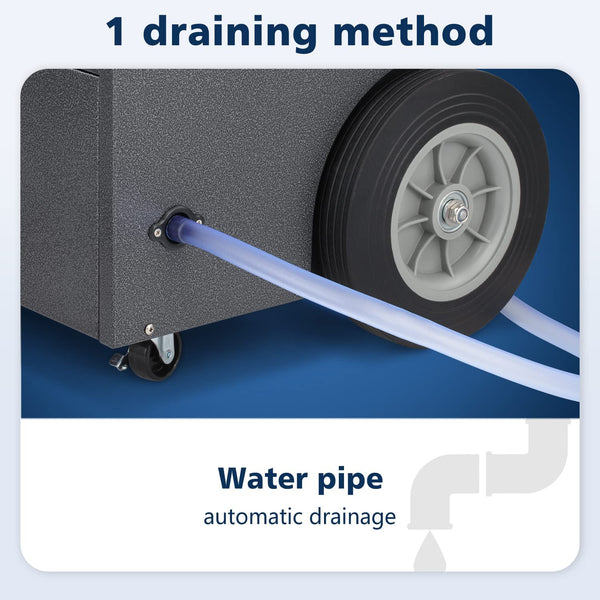 - With 360° semi-pneumatic wheels and a sturdy handle, our commercial dehumidifier is easy to move and offers excellent stability.