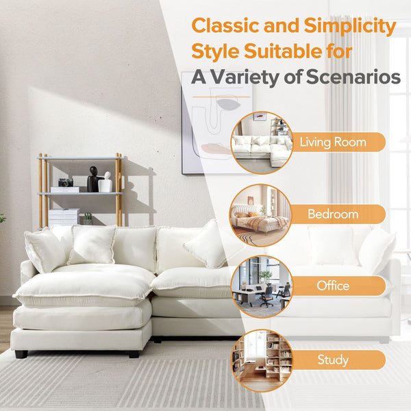 Get it Now - Introducing our Luxurious L-Shape Chenille Upholstered Sofa, a perfect blend of beautiful detail and modern charm for your living room. Designed to elevate your space, this sofa effortlessly combines style, comfort, and functionality. Transform your space into a haven of relaxation and modern sophistication. Treat yourself to the ultimate lounging experience today!