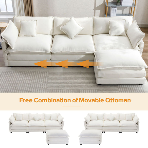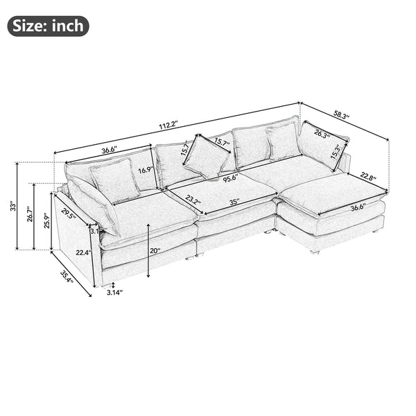 112.2" L-Shape Chenille Upholstered Sofa for Living Room Modern Luxury Sofa Couch with Ottoman and 5 Pillows for Living Room