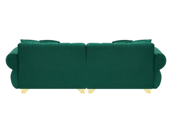 Bring luxury and comfort to your home with the 89-Inch Spring-Wrapped Cushions Sofa. Upholstered in premium green velvet, this sofa features an art deco-inspired design, with dramatic channel tufting on the back pillows and seat cushions, adding texture and elegance to your living space. The wide spring-wrapped cushions provide lasting comfort, perfect for sitting, reclining, or even lying down. Equipped with four comfy doll face throw pillows, this sofa is perfect for relaxing or hosting guests. The fashion-forward metal feet and sleek design make it a beautiful addition to your apartment, living room, office, or reception area. With a weight capacity of 500 lbs and easy assembly, this sofa is both functional and stylish.