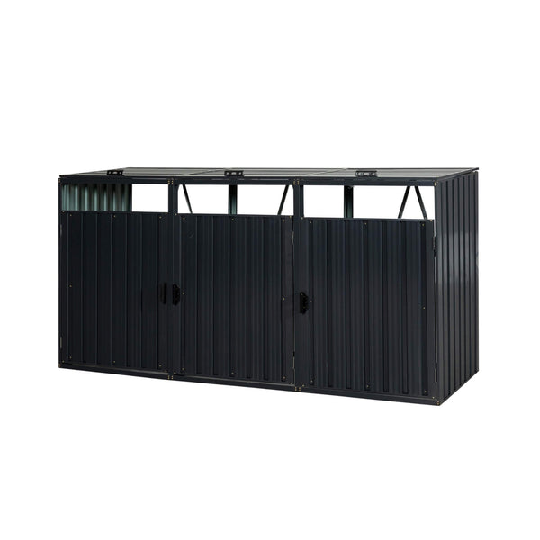 Keep your outdoor space organized and stylish with this 94-Inch Heavy Duty Outdoor Galvanized Stainless Steel Garbage Bin Shed. Designed to tuck away up to three standard-sized trash bins, this sleek and durable shed transforms an eyesore into a design feature. Built from galvanized steel, it’s not just resistant to rust or rot but also scratch-proof, ensuring it stays pristine despite exposure to the elements. Equipped with ventilated, lockable doors and easy-to-lift lids, it offers a seamless trash management solution that's both practical and visually appealing. Assembly is quick and easy with pre-cut and pre-drilled panels, making this shed as efficient to set up as it is to use!