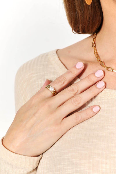 This minimalist open ring features a pearl accent, adding a touch of elegance and sophistication to your look. Made from stainless steel and 18K gold-plated, it offers both durability and a touch of luxury. This pearl stainless steel open ring is a versatile and fashionable accessory for any occasion.
