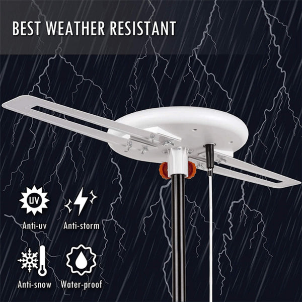 Are you looking for a powerful omni-directional digital HDTV antenna to collect signals from all directions? Our Long Range Outdoor TV Antenna is perfect for both urban and rural areas, significantly reducing the noise and interference that traditional TV antennas and satellite dishes may introduce. Constructed from high-quality, durable materials, this outdoor digital TV antenna is reliable enough to stay on your roof year-round, resisting wind and rain without requiring periodic adjustments for clear signals. Despite its simple design, it provides access to a wealth of free content, keeping you up-to-date with the latest news, trends, and programs—even from towers up to 150 miles away. Best of all, the included over-the-air antenna amplifier is easy to set up: just connect the coaxial cable to your TV and start enjoying unlimited free HD content all day long.