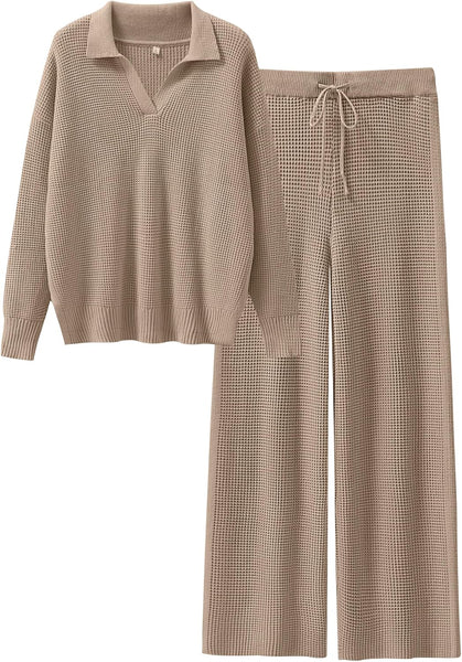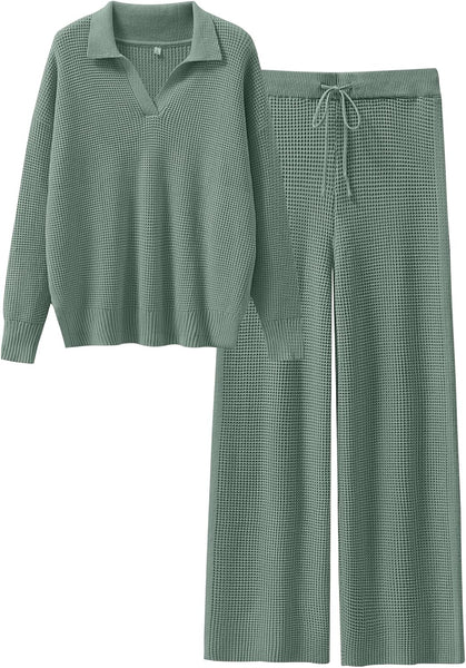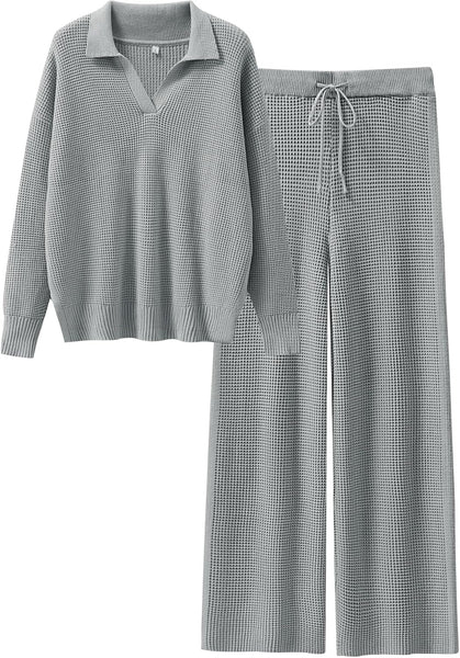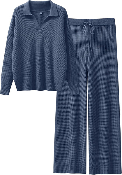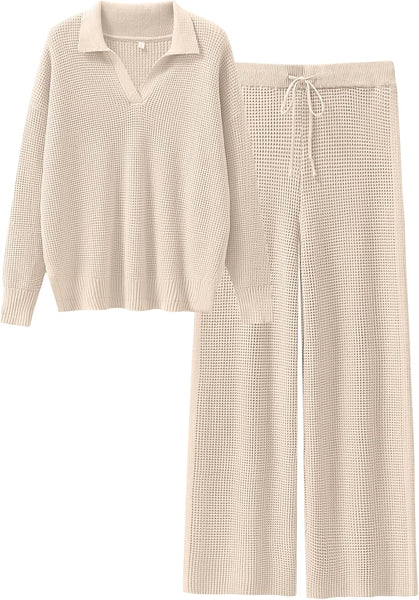 - Size & Features: Size: S=US(4-6), M=US(8-10), L=US(12-14), XL=US(16-18) / Fit Type - Regular. Stretch - Slight, Thickness - High, Softness - Medium / Womens 2 Piece Fall Outfits / Waffle Knit Sweater Set / Wide Leg Pants Lounge Sets / Cozy Matching Sets for Women / V-Neck Top / Comfy Loungewear / Relaxed Fit / Airport Outfit / Trendy Pajama Sets / Dorm Room Essentials for College Girls / Preppy Style.