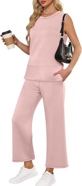 - Features - Women's two piece outfits are consists of a tank top and high waist wide leg pants, lounge set, trendy sweatsuit travel clothes, crew neck, sleeveless, and luxuriously soft knitted fabric. This women's summer lounge set is suitable for travel,daily wear, work, office, business, and vacation.