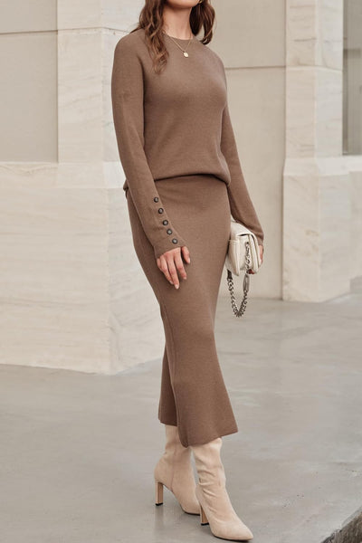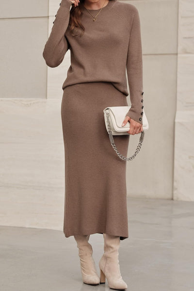 - Elegant Design: Classic crew neckline, long raglan sleeves, and delicate decorative buttons at the cuffs. The A-line midi skirt and sweaters tops are finished with ribbed hem and cuffs for a polished look