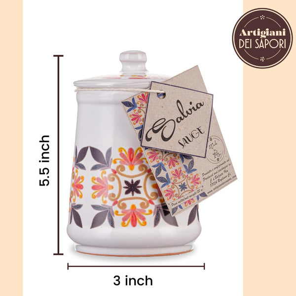 Artigiani dei Sapori, Dried Ground Sage in Italian Handmade Ceramic Jar, Herb, Spice & Seasoning Gifts, Spice Jars with Spices included 0.7oz (19grs)