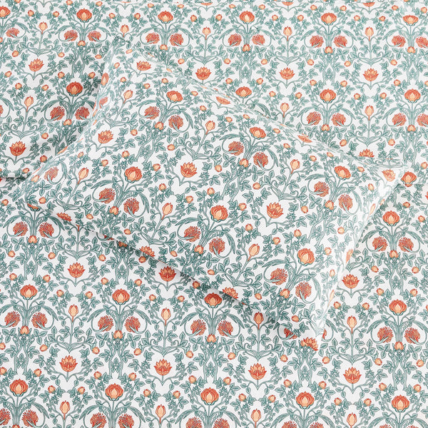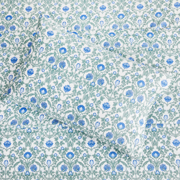Our floral print is inspired by the Arts and Crafts design movement of the 19th century. Swirls of leaves and flowers playing across your bed are a nod to our deep love of the natural world and traditional design. Our 400 thread count, 100% cotton sateen printed sheet sets are best sellers for good reason. Supremely soft, smooth to the touch and incredibly durable, this sheet set holds up to years of use and grows softer with every wash.