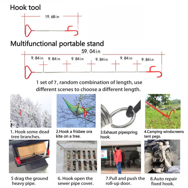 2. Long Distance hooks - Our hooks are made of solid 303 stainless steel and the connection nuts are made of non-slip inserts that can be easily removed with a wrench. Strong structure, anti-oxidation, not easy to bend. Precision thread for seamless connection between connecting rods. It consists of 7 parts -9.84" (~25cm) handle rod, 9.84" (~25cm) double U hook, 9.84" (~25cm) hook rod and 4 9.84" (~25cm) extension rod, which can reach 59.04" (~150cm) when assembled. It can be assembled into 3 sizes according to different needs. 1. Anti-slip soft rubber handle protection and groove design, easy to assemble and disassemble, lengthening the hook rubber position, no need to worry about damage to the car paint.