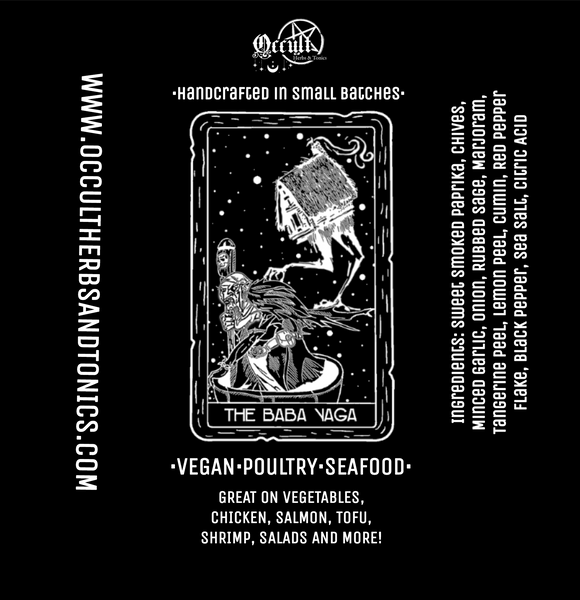 In Slavic folklore, Baba Yaga stirs her cauldron in a hut that walks on chicken legs, weaving spells of both fear and wonder. Our Baba Yaga Blend channels that same duality: bright citrus and aromatic herbs with a grounding touch of earth. Chives, marjoram, black pepper, and lemon unite to elevate poultry, seafood, and more—banishing unwanted notes while summoning deep, balanced flavor. Conjured in small batches with quality-sourced ingredients, this blend transforms your kitchen into a hearth of old-world magic.