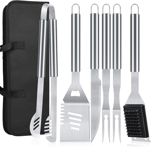 • 4-in-1 Spatula with Bottle Opener:The highlight of this 6-piece barbecue tool set is the multipurpose spatula that can cut and flip meat and open up a beer bottle in seconds. Perfect for backyard barbecues and relaxing summer park picnics.