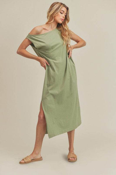 Effortless in mind, the Bella Dress features a slouchy silhouette with wide scoop neckline and side slits at bottom for added shape, making her the perfect dress to lounge in.