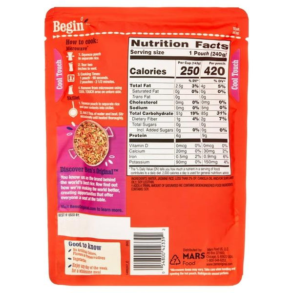 Savor the delicious taste of traditional Thai Jasmine rice and satisfy your desire for Southeast Asian cuisine in just 90 seconds with BEN'S ORIGINAL™ READY RICE™ Jasmine Rice. Plus, the microwaveable pouch eliminates prep and cleanup, making it easier than ever to create an exotic, global meal.