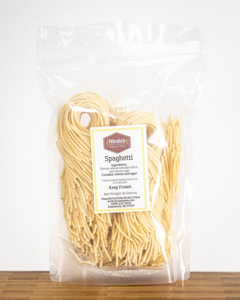 ##0##Satisfy your cravings for classic Italian food with our freshly made Spaghetti Pasta. Made from scratch with premium ingredients sourced directly from Local Farmers and organic unbleached semolina flour imported directly from Italy. It’s made fresh to order and flash frozen to preserve freshness, without any preservatives. Perfect for any meal. Everyone can enjoy it, including those who are lactose-intolerant.