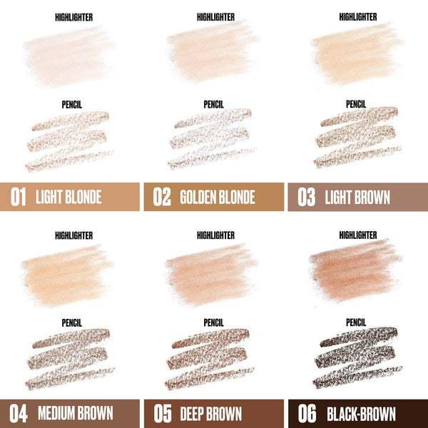 Finally…. Your all in one solution for the perfect brows. Let it fro with this easy to use filling and shaping pencil with a slim triangular tip to ensure control and precision. Built in sheer highlighter featuring a sponge applicator lifts and defines brows and a blending spoolie-brush is all housed in this slim revolutionary wand. Color sets with excellent adherence and long wear properties in a naturally smooth and powder-soft finish.