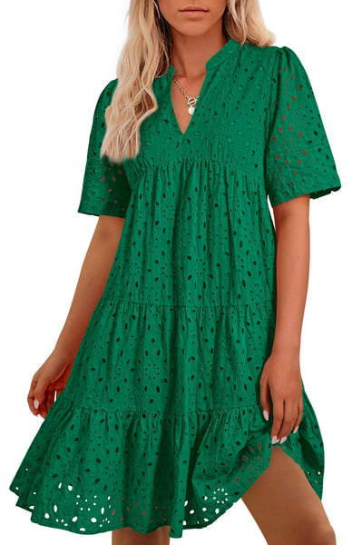 BTFBM Womens Boho Summer Dresses 2025 Resort V Neck Short Sleeve Hollow Out Lace Ruffle Casual Beach Mini Vacation Dress