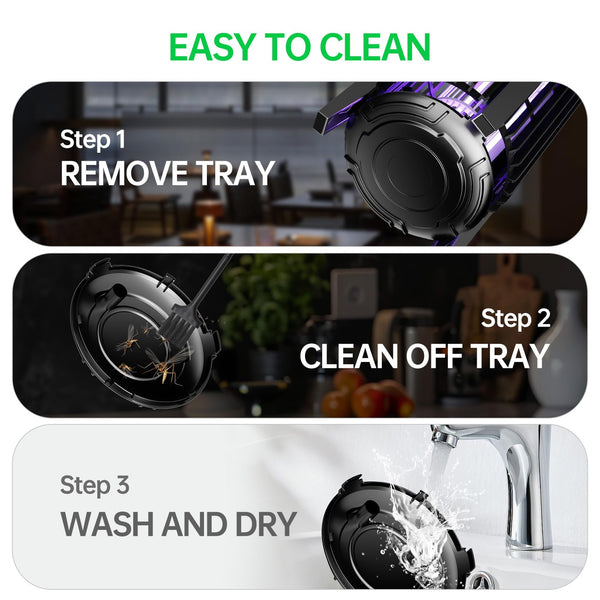 - EASY TO CLEAN AND REPLACEABLE BULB FLY ZAPPER: Dead bugs will fall onto the collecting tray, you just need to clean the tray with brush provided. 15W Bulb is replaceable. If you feel that your light bulb is less effective in attracting flying insects, you can replace it. EPA registered that makes the insect killer ideal for outdoor and indoor use. Great for garden, backyard, patio, balcony, garage, and home
