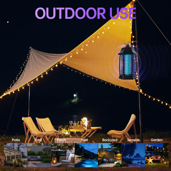 - HIGH VOLTAGE MOSQUITO INSECT KILLWER: Electric bug zapper handles your property's flying & biting pest problem via high-intensity 15W Uπ tube, supercharged 4200V kill grid. Effectively eliminate most flying insects: mosquito, Aedes, gnats, midges, flies, horse flies, fruit flies, house flies, moths, wasps, etc. Please use this exterminator at night and in the dark
