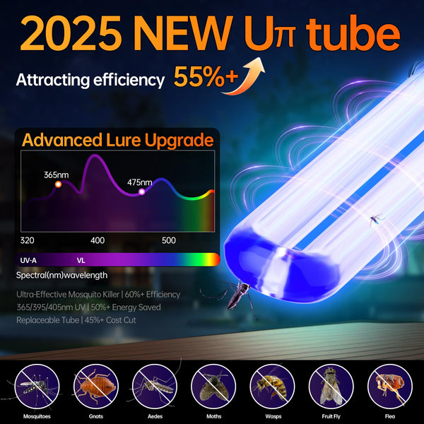 - EPA REGISTERED MOSQUITO KILLER: The 2025 upgraded Uπ tube, attracting flying insects efficiency 55%+. the high-voltage electric grid zaps them on contact. So you don't have to put up with the smell of sprays, insecticides and attractants. You also don't have to worry about your pets eating insects that have been killed by pesticides.ABS material, high-temperature resistance, super flame retardant, and carefully designed make your family and pets safer